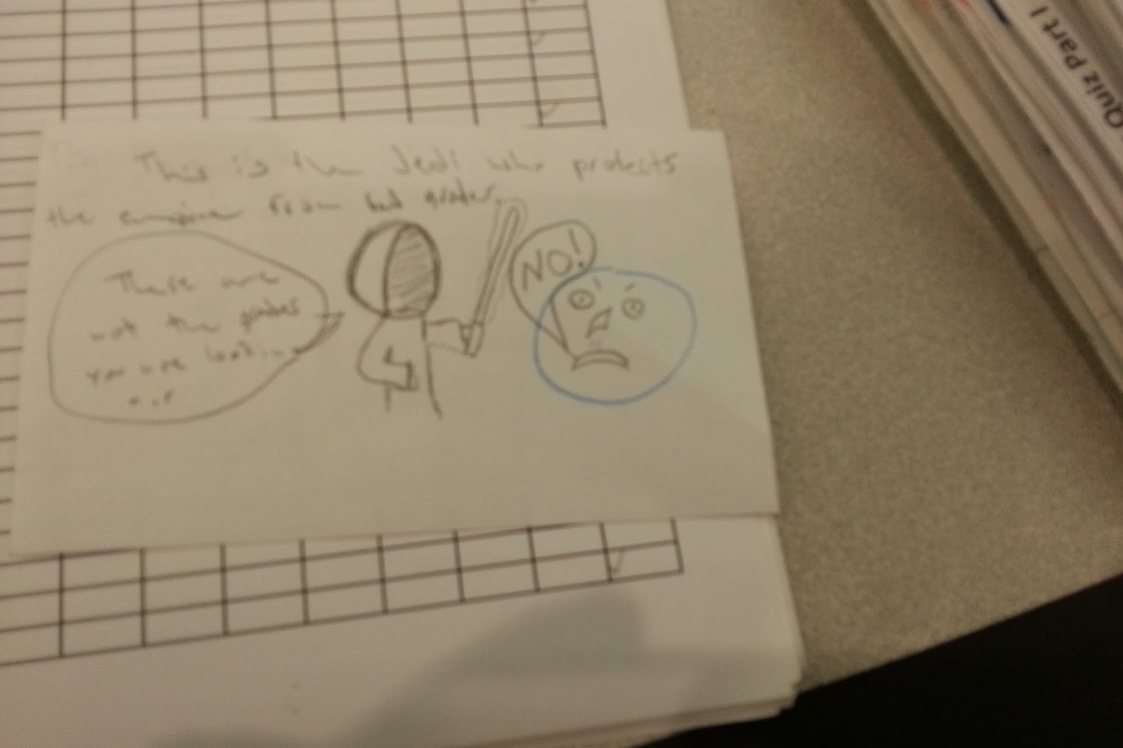 | "This is the Jedi who protects the empire from bad grades" "These are not the grades you are looking for" "NO!" |